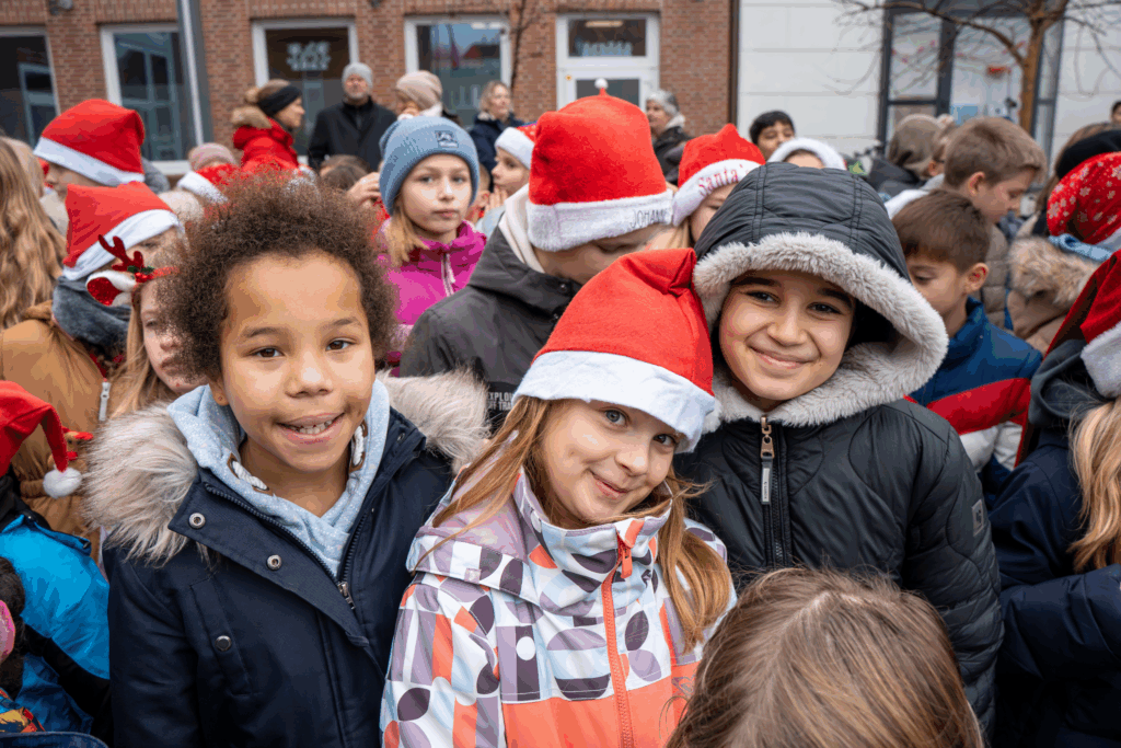 Schon der Auftakt war ein echtes Erlebnis: Alle Kinder der Schule haben sich auf dem Rathausplatz versammelt und gemeinsam gesungen. Das war ein wunderschönes Bild und ein Gänsehaut-Moment für alle Zuhörer!